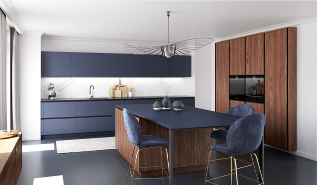Une cuisine mate offrira une réelle touche chic et classe à votre intérieur. Le mat apportera également de la chaleur et une ambiance raffinée. Au delà du côté esthétique, la finition mate vous offre un toucher soyeux, si agréable et facile d'entretien. Il ne vous reste plus qu'à choisir le coloris qui sublimera votre intérieur : le traditionnel noir ou plutôt une couleur plus vive telle que le bleu saphir, le vert comodoro ou même l'abricot ?